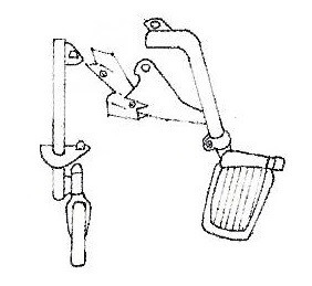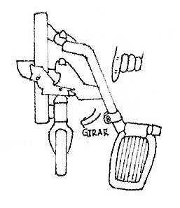 Empuje la palanca liberadora hacia afuera y gire el descansapies derecho hacia la izquierda y el izquierdo hacia la derecha. Para desmontar los descansa pies de la silla de ruedas eléctrica , lleve los descansa pies hacia arriba y gire para liberarlos del perno tal como se muestra en la figura a continuación.